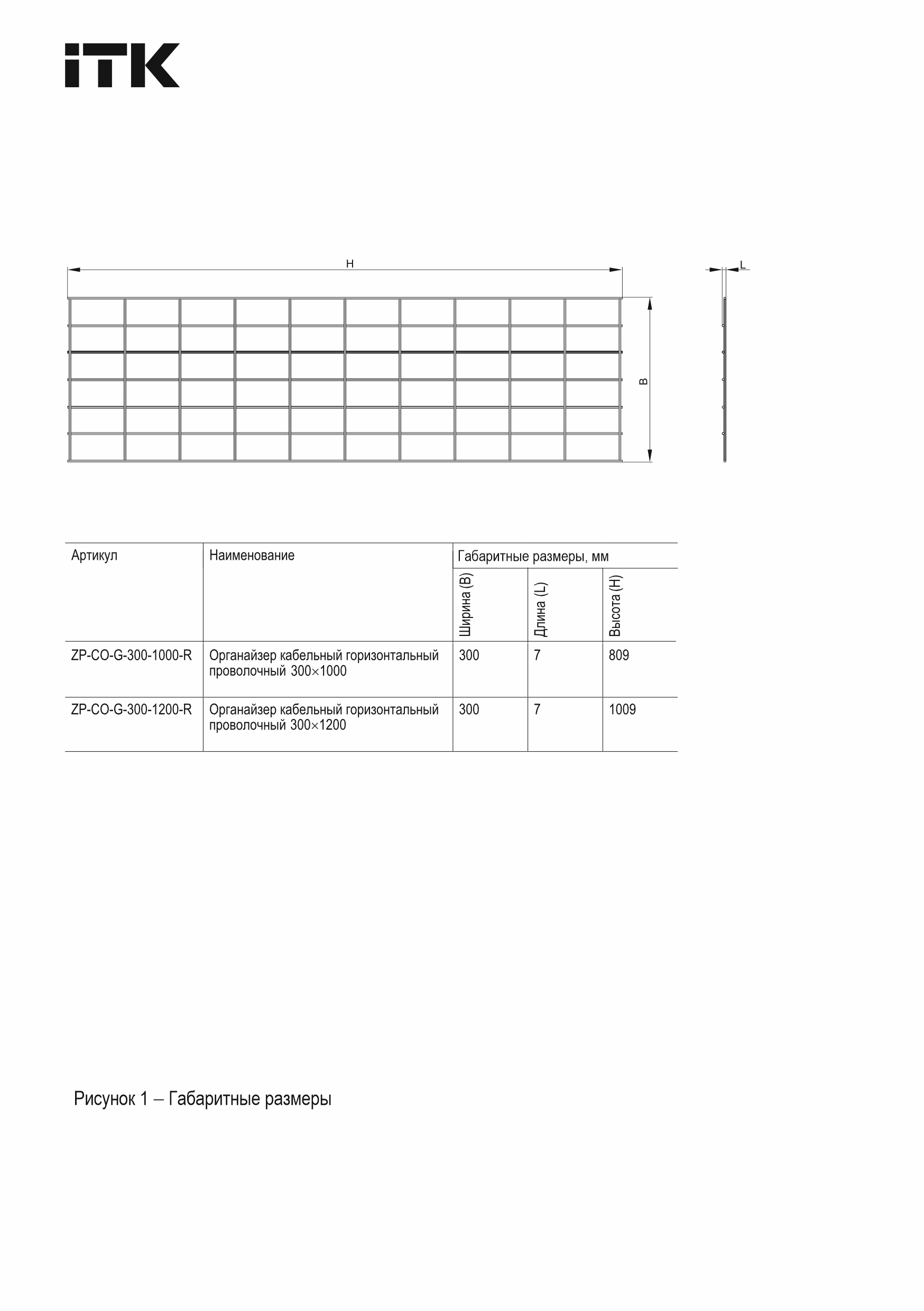ITK by ZPAS Органайзер кабельный горизонтальный проволочный шириной 300мм для шкафов глубиной 1200мм РФ