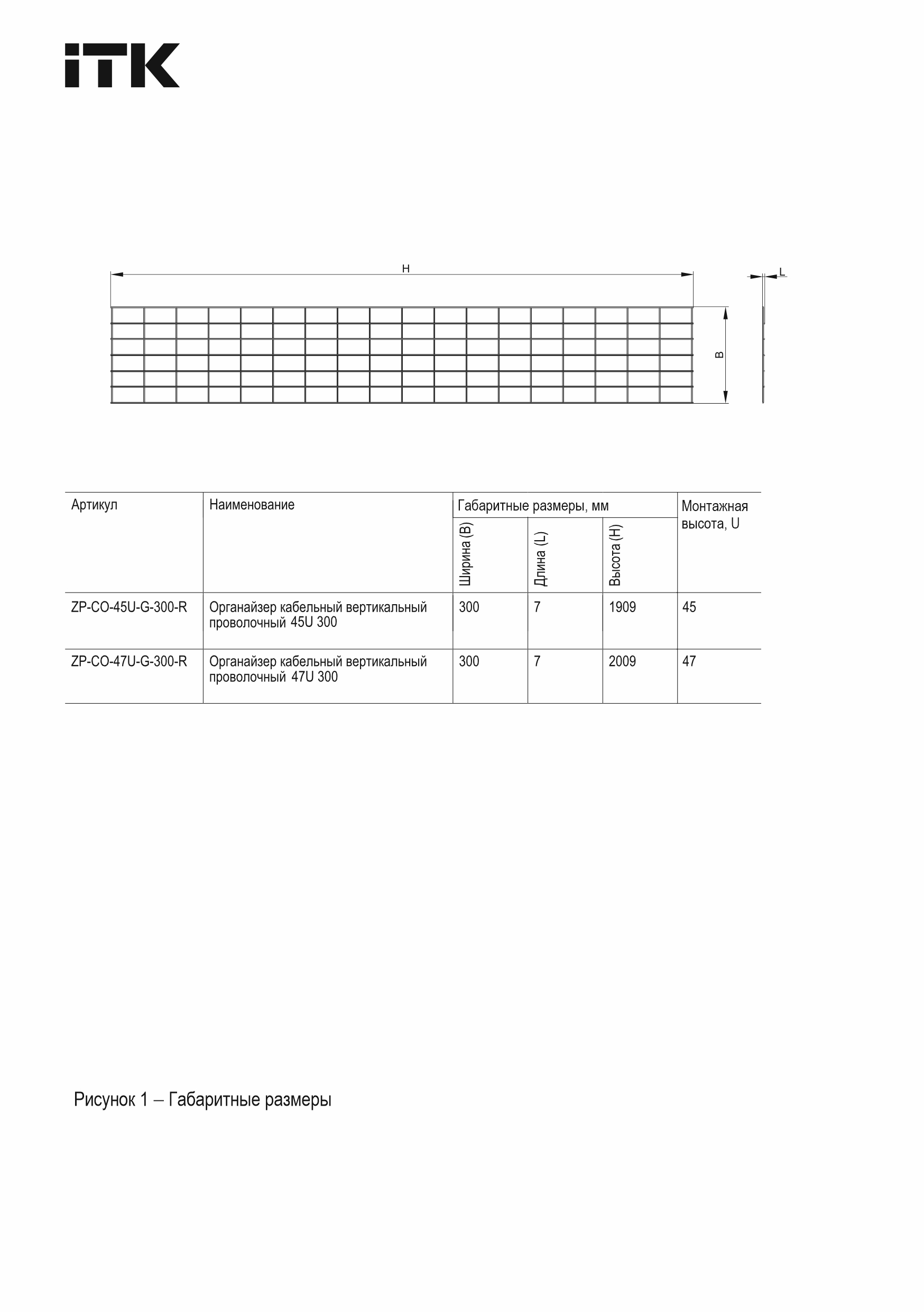 ITK by ZPAS Органайзер кабельный вертикальный проволочный 47U шириной 300мм РФ