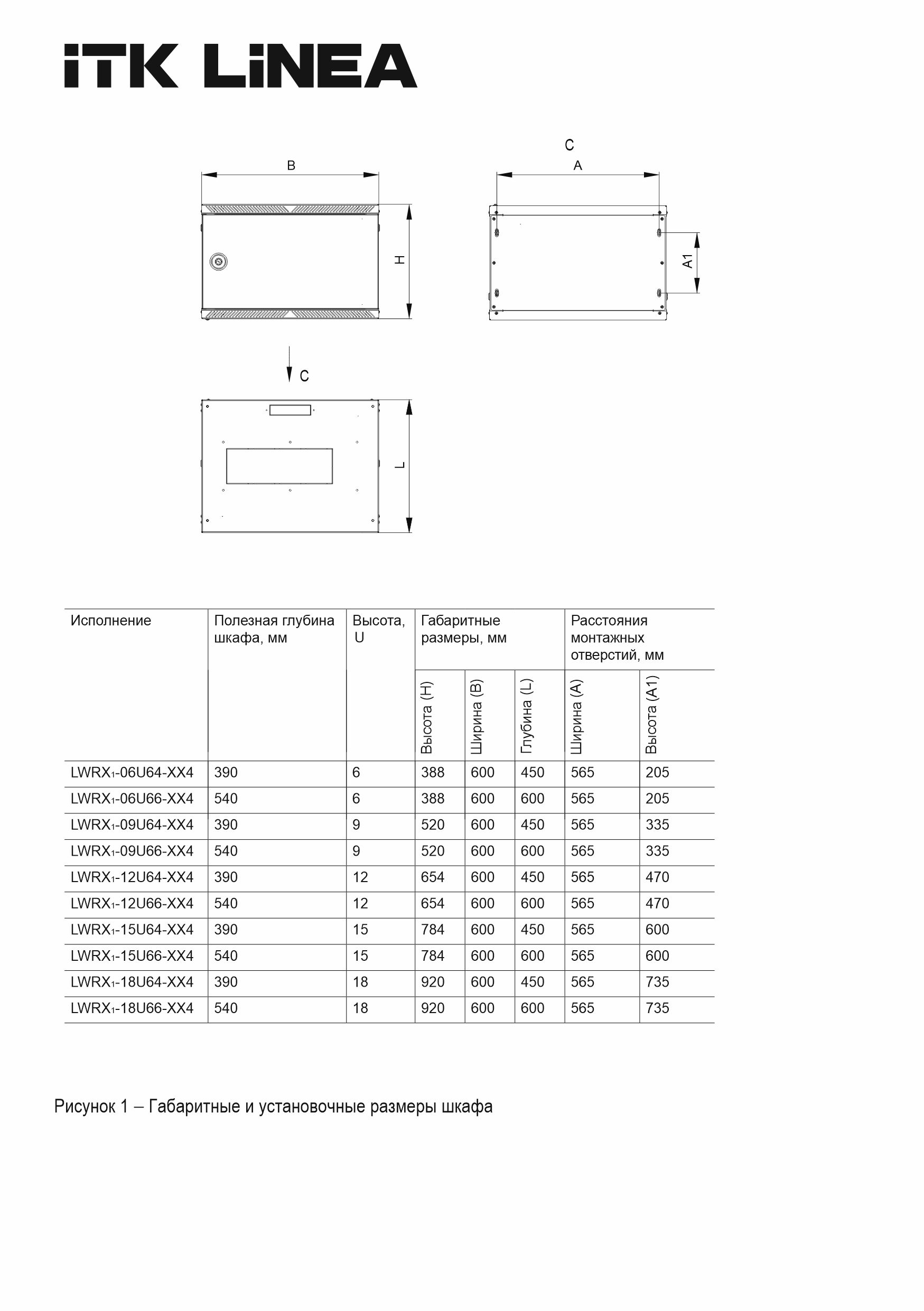 ITK LINEA W Шкаф настенный 18U 600х600мм дверь перфорированная черный 2.0