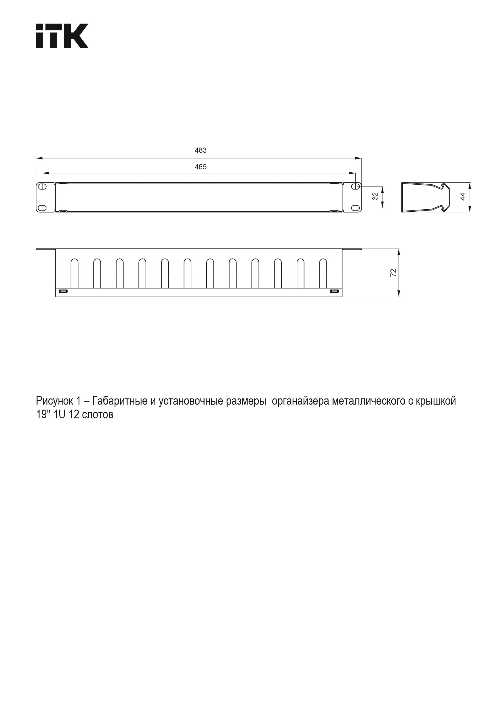 ITK Органайзер кабельный металлический с крышкой 19" 1U 12 слотов черный РФ