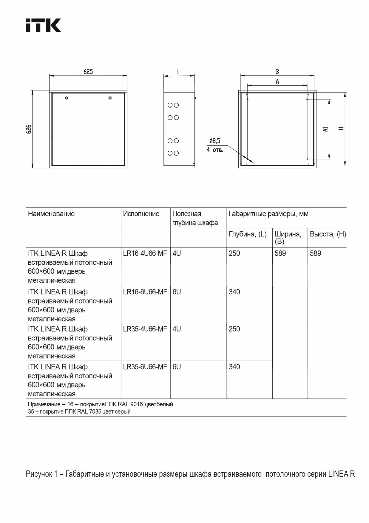 Шкафы потолочные серии LINEA R ITK предназначены для размещения телекоммуникационного оборудования 19” в доме, офисе или любом другом помещении в нише подвесного потолка. Максимальный вес до 15 кг.